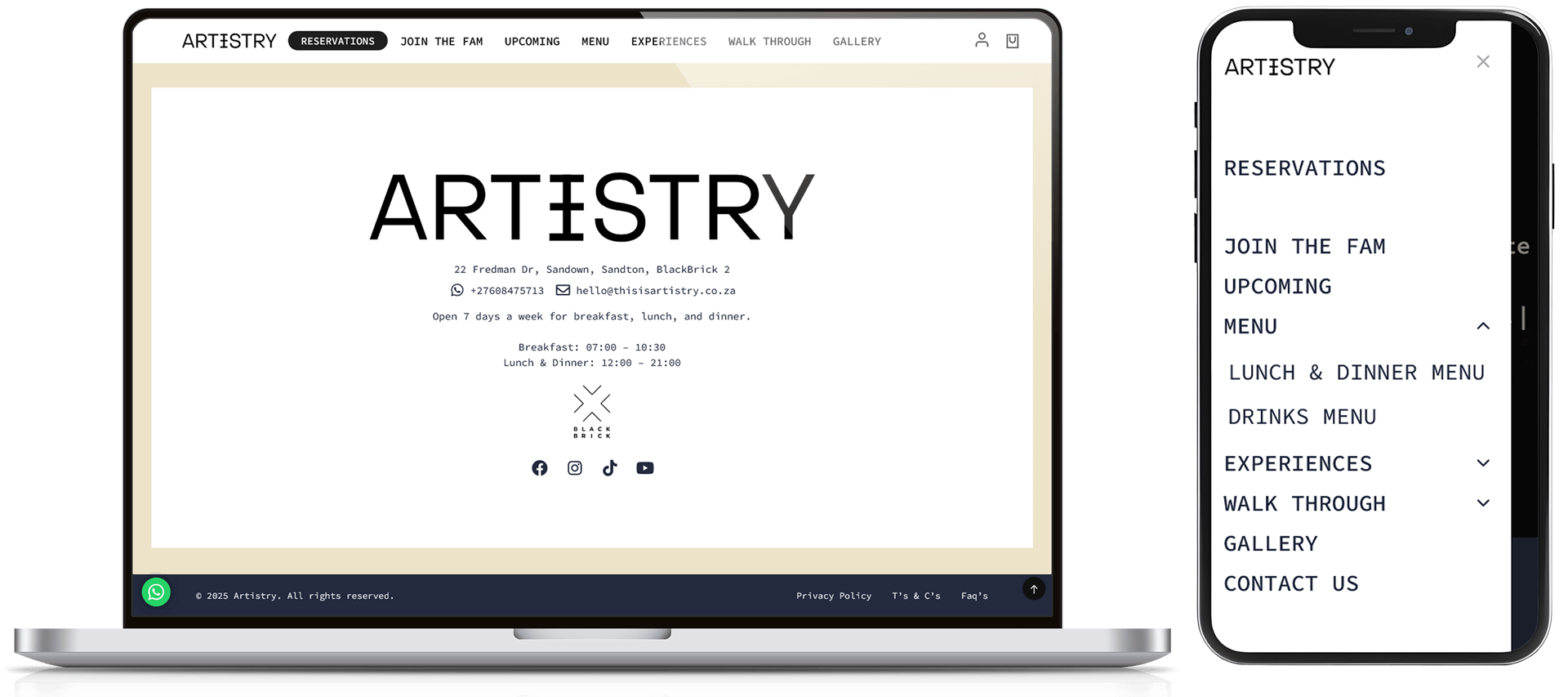We created a responsive, mobile-forward WordPress site that reflects the aesthetic and narrative of Artistry’s multi-level experience. The design blends elegance, cultural flair, and modern interaction giving users a preview of the journey: dining, theatre, after-party.