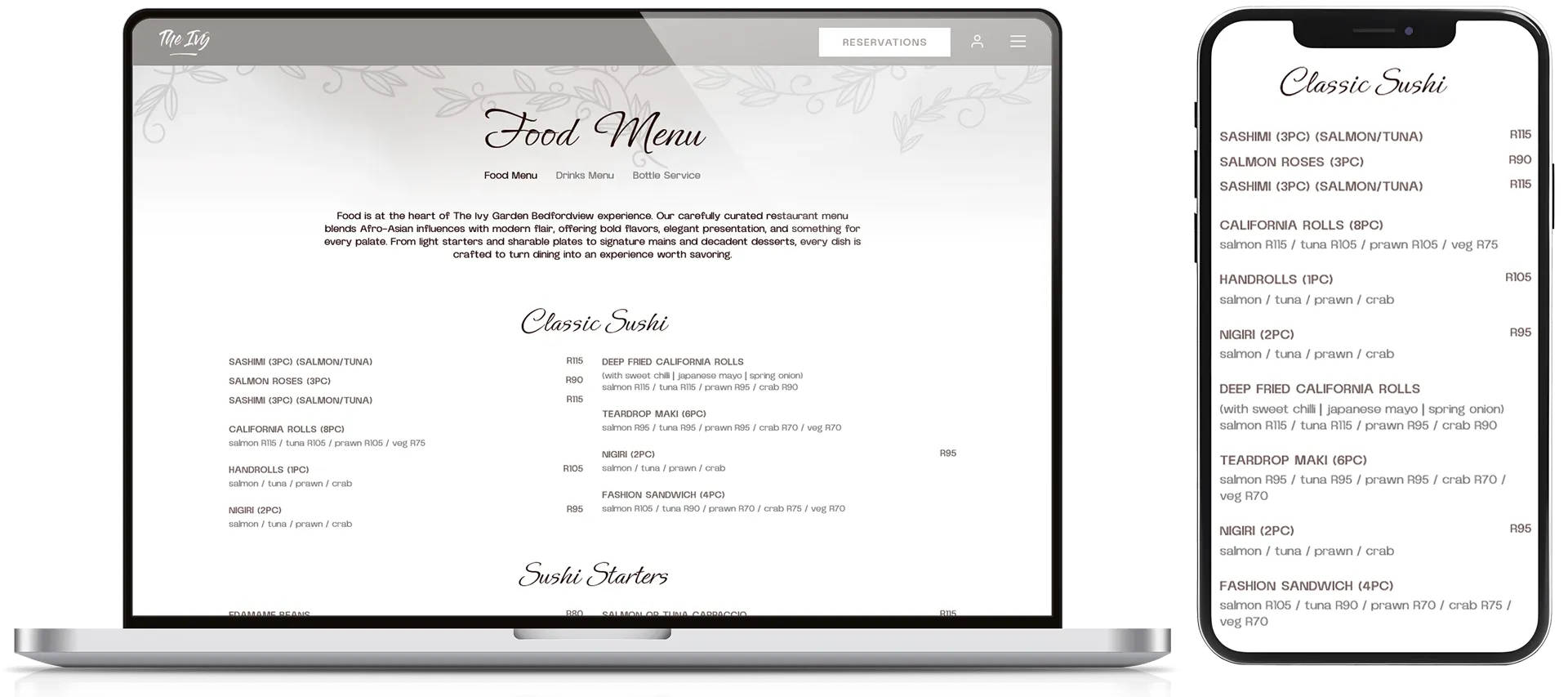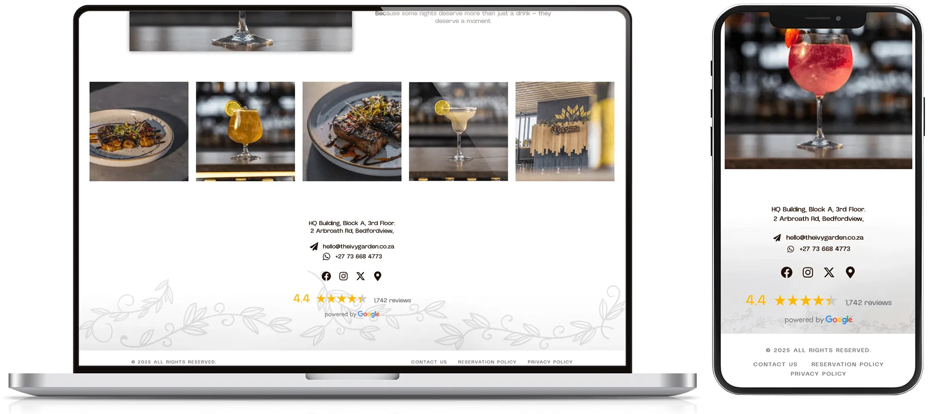 As Bedfordview’s premier lifestyle and dining destination, The Ivy Garden blends Afro-Asian cuisine, elevated mixology, and a vibrant social scene beneath the Joburg skyline. The Bigger Pixel was commissioned to craft a digital experience that captures the venue’s sophistication, from its lush, urban aesthetic to its curated menus and nightlife energy. The result is a sleek, immersive website that embodies The Ivy’s essence: refined, modern, and unmistakably alive, positioning it as Johannesburg’s go-to destination for fine dining, sundowners, and unforgettable evenings.